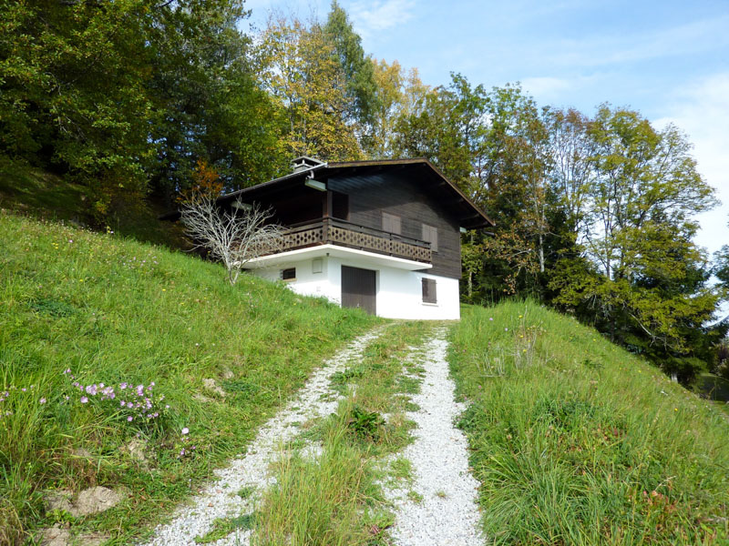 Fabrication et pose d'un chalet/dépôt en ossature poteaux/poutres en épicéa et mélèze. Chevrons en queues de sapin écorcées. Bardage en mélèze brut de sciage. Combloux
