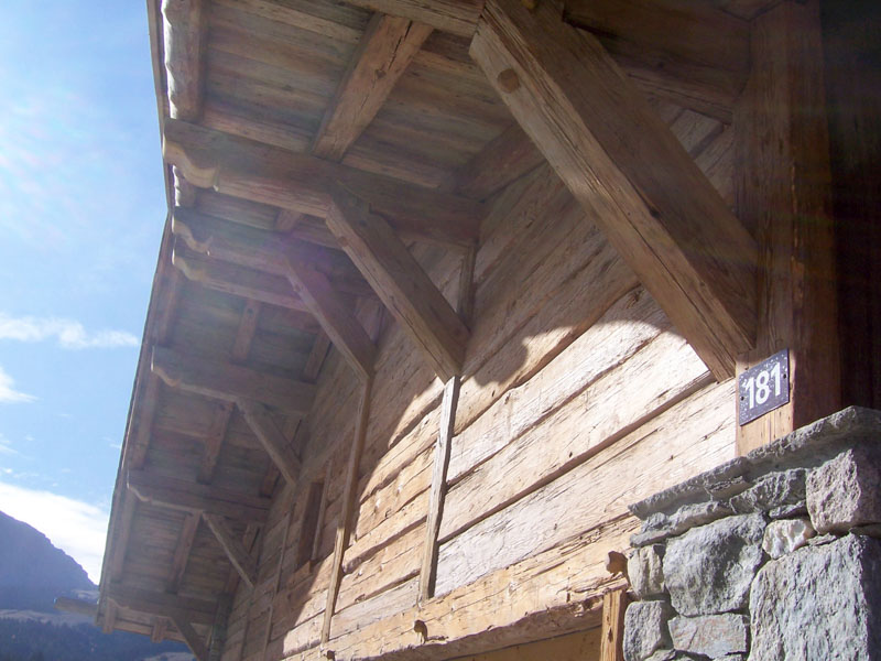 Colonnes en vieux bois. Bardages en vieux bois, à panneaux, à Megève |
